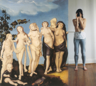 Die Bildfindung entstand im Kontext der Auseinandersetzung mit den Phänomenen des Jungbrunnens heute. Der spielerische Impuls, die eigene Künstlerinnen-Identität historisch, kritisch und in Teilen feministisch zu verankern, war dabei Auslöser. So gerät der Fotoapparat* im Spannungsfeld (des Ideals) der Vollkommenheit der Götter und Göttinnen im Gegensatz zur vermeintlichen Unvollkommenheit des Menschen zu jener prothetischen Erweiterung, die zentral im Narrativ verankert ist. Der Prothesengott Sigmund Freuds tönt an. Der Psychoanalytiker des ausgehenden 19. Jahrhunderts ist jedoch nicht der Einzige, der sich des Phänomens einer – auch metaphorischen – hybriden Körperlichkeit annahm. Ganz im Gegenteil. Mischwesen, zurückzuführen auf die Amalgamierung einander fremder Stoffe ebenso wie prothetische Körpererweiterungen finden sich gleichermaßen in der Antike, im Barock und im Surrealismus. Sowie in anderen Epochen. Sie gestalten unsere zeitgenössische Existenz und stellen historisch betrachtet eine Voraussetzung für die Künstliche Intelligenz (KI) dar. Die Vielfalt der Phänomene ist verblüffend und oszilliert zwischen dem High&Low der Erscheinungen und ihrer Diskurse gleichermaßen. Das heißt, auch die Kunst u/o das Kunstwerk tragen zur Definition des achten oder eines zukünftigen anderen Lebensalters bei. Und das nicht allein unter gender-relevanten Fragestellungen, sondern alle Dimensionen einer Gesellschaft sind dabei als relevant vorstellbar, auch die von Materialität und Medialität, einschließlich ihrer werkinhärenten konstruktiven und konstitutiven Parameter.